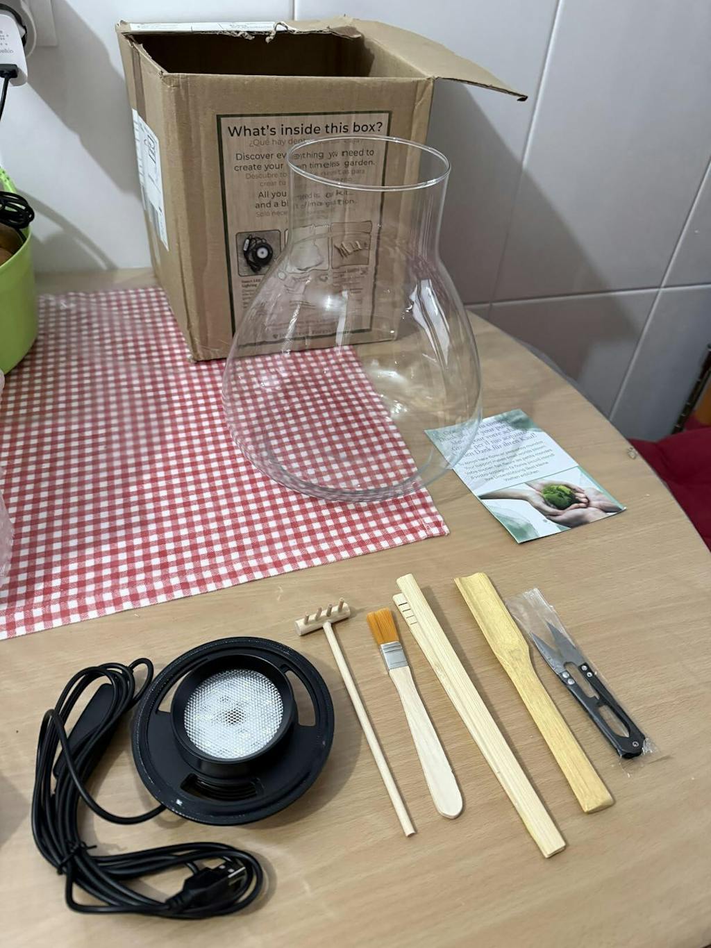 El envase de cristal es muy bonito y la tapa con luz le da un toque mágico por la noche. Todo llegó muy bien embalado y con los elementos separados para que no se dañen. Sin duda repetiré para regalar otro, recomiendo este kit totalmente.